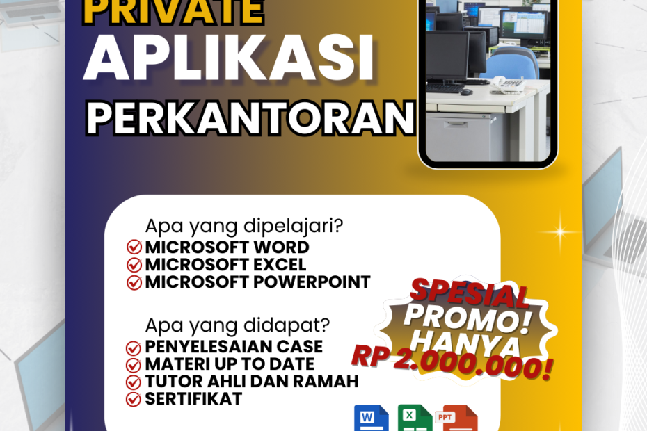 ✨ Tingkatkan Skill Perkantoran Kamu di 2025! ✨Mau jago Microsoft Word, Excel, dan PowerPoint dengan cepat?Kelas Private Aplikasi Perkantoran LPIA Buaran siap bantu kamu menguasai skill paling dibutuhkan di dunia kerja! 🎯 Kenapa harus ikut?✔ Belajar private lebih fokus✔ Materi lengkap & up to date✔ Penyelesaian studi kasus nyata✔ Didampingi tutor ahli, sabar, dan ramah✔ Dapat sertifikat resmi✔ Jadwal fleksibel sesuai kebutuhanmu 💥 Promo Spesial: Hanya Rp 2.000.000!📅 Mulai: 25… Read More »✨PROMO PROGRAM KOMPUTER PRIVATE APK 1✨