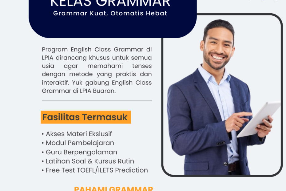 Sering bingung pakai tenses yang mana saat ngomong Inggris? 🤔 Jangan biarkan grammar jadi penghalang rasa percaya diri kamu! Di LPIA Buaran, kita punya Kelas Grammar yang dirancang khusus untuk semua usia. Belajarnya praktis, interaktif, dan pastinya nggak ngebosenin! ✨Kenapa harus gabung? ✅ Materi Eksklusif & Modul Lengkap ✅ Guru yang super berpengalaman ✅ Latihan rutin biar makin jago ✅ BONUS: Free Test TOEFL/IELTS Prediction! 🎁Yuk, saatnya “Grammar Kuat, Otomatis… Read More »Kursus Grammar